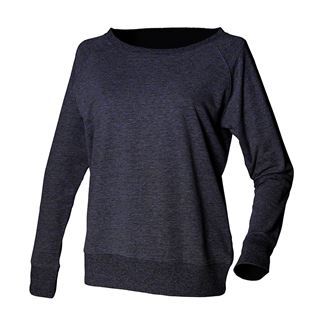 Layer up, cool down. This sweat has a relaxed fit and drape with wide neckline and raglan sleeves for comfortable lounging. Ribbed cuffs, hem and neckline with twin-needle stitching ensures a premium finish. Tear-out label for easy rebranding.