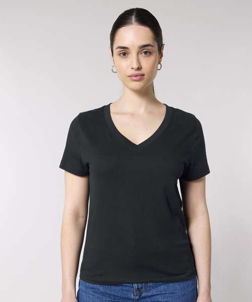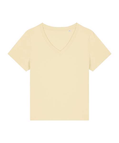 The women’s Stella Isla v-neck t-shirt comes in a weight of 155gsm, in a medium fit. Featuring a wide colour palette to choose from, its 100% organic ringspun combed cotton provides the perfect, smooth printing surface for decoration.