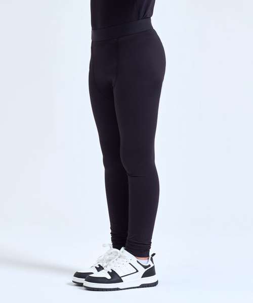 Stretch leggings. Elasticated waistband. Lightweight. Twin-needle stitching on ankle hem. Full length leggings. We recommend using block out vinyl and inks.Product contains no branded neck or waist label. Removable Kimble or looped garment tags. Inner seam label holds important product information on one label with a second label containing brand information which can be cut-away. UPF 40+.