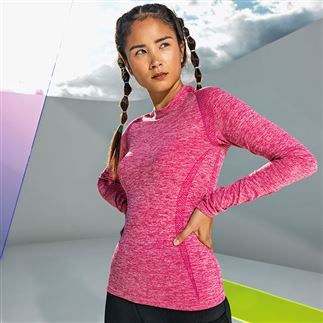 Your go-to crew for cool early morning or evening runs, the women's TriDri® seamless "3D fit" multi-sport performance long sleeve top offers seamless technology, stretch fit and attractive detailing.