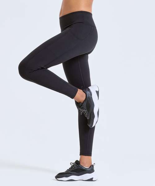 Full-length leggings. Soft-stretch fabric. Elasticated waistband. Black inner waistband and coin pocket. Side panels to legs with hidden insert pocket. Recycled Polyester. We recommend using block out vinyl and inks.Product contains no branded neck or waist label. Removable Kimble or looped garment tags. Inner seam label holds important product information on one label with a second label containing brand information which can be cut-away.