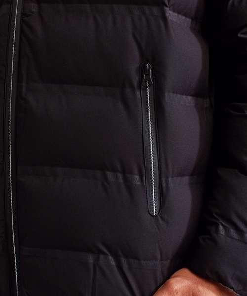 Tonal reverse coil rubberised zip tape and metallic silver teeth on centre front and pockets with signature zip puller. Welded wide baffles. 390gsm polyester fill. Fully-lined in tonal polyester. Streamlined, clean hem and cuffs with internal elastic. Internal zipped opening on back panel for embroidery access. Product contains no branded neck label.* Removable Kimble or looped garment tags. Inner seam label holds important product information on one label with a second label containing brand information which can be cut-away.