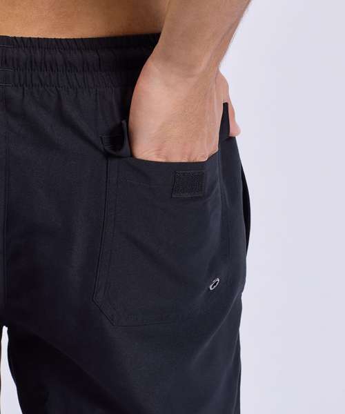 Pocket at rear with eyelet for water release. Hook and loop fastening on pocket. Forward facing swing pockets. Contrast mesh insert and drawcord. Gun metal eyelets on waist for drawcord. Elasticated waistband.