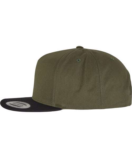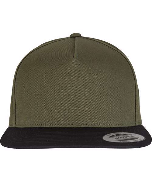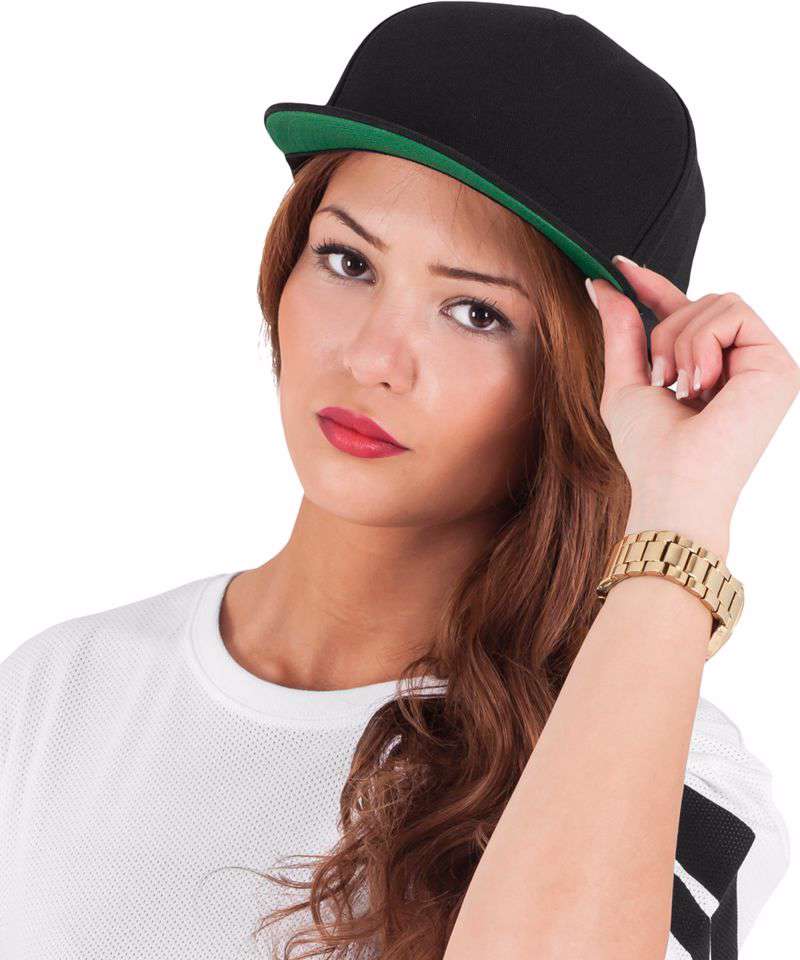 A 5-panel cotton twill snapback with green straight under visor. Ideal for screen-printing and part of the classics range from Yupoong® with a 43 year heritage.
