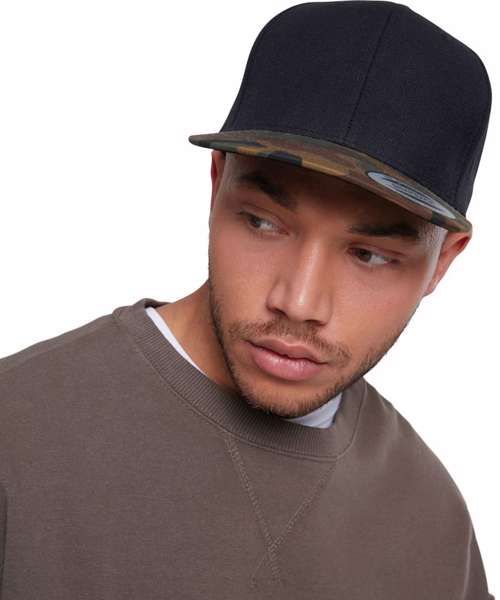 Classic snapback 2-tone camo. Robust wool-twill-blend. Different prints in trendy camouflage colours.