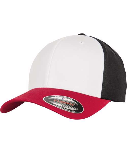 Modern cap. Relaxed style. Tri-coloured design with pre-curved visor. Integrated rubber band.