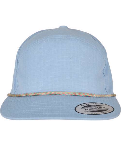 Colour braid jockey cap. Pastel colours. Wide front and a straight visor with decorative seams. Braided band in contrasting colours on the visor. Handy Flexfit closure.